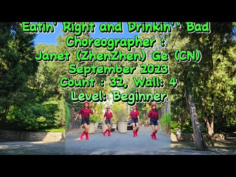 EATIN' RIGHT AND DRINKIN' BAD LINE DANCE|CHOREO BY JANET(ZHEN ZHEN) GE (CN)|DANCED BY#ROSESLINEDANCE