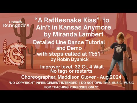 A Rattlesnake Kiss - Ain’t In Kansas Anymore by Miranda Lambert Line Dance Tutorial - Demo at 11:51
